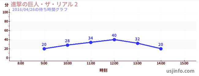 • 進撃の巨人・ザ・リアル 2$B$N(B2016年04月26日の待ち時間