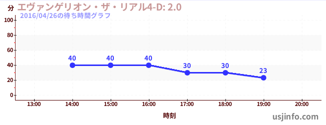 • エヴァンゲリオン・ザ・リアル4-D: 2.0$B$N(B2016年04月26日の待ち時間