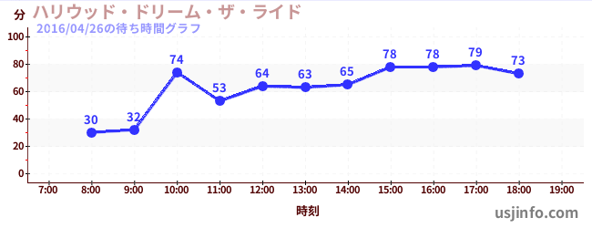 • ハリウッド・ドリーム・ザ・ライド$B$N(B2016年04月26日の待ち時間