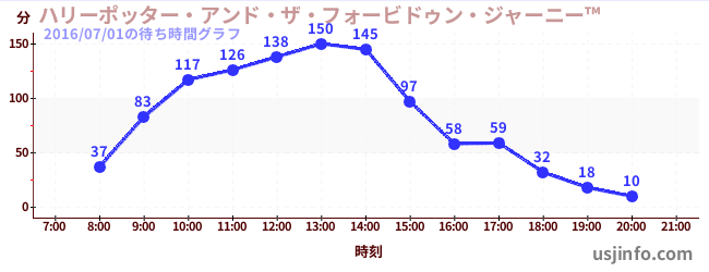 • ハリーポッター・アンド・ザ・フォービドゥン・ジャーニー™$B$N(B2016年07月01日の待ち時間