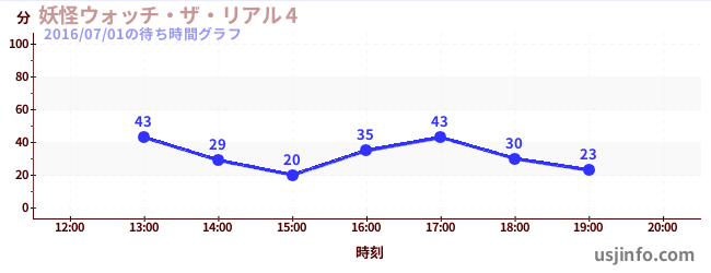 • 妖怪ウォッチ・ザ・リアル 4$B$N(B2016年07月01日の待ち時間