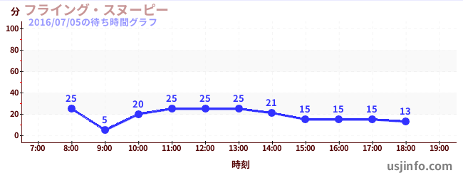 • フライング・スヌーピー$B$N(B2016年07月05日の待ち時間