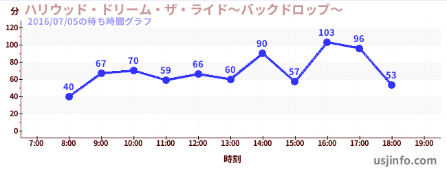• ハリウッド・ドリーム・ザ・ライド〜バックドロップ〜$B$N(B2016年07月05日の待ち時間