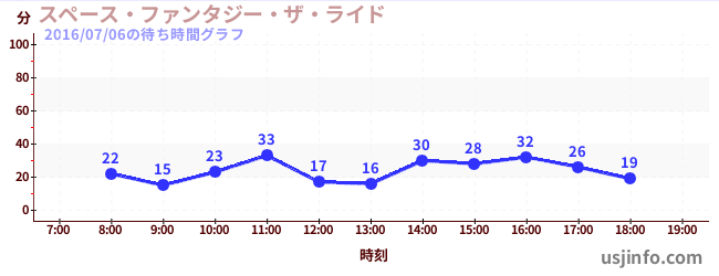 • スペース・ファンタジー・ザ・ライド$B$N(B2016年07月06日の待ち時間