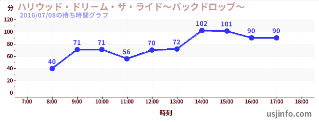 • ハリウッド・ドリーム・ザ・ライド〜バックドロップ〜$B$N(B2016年07月08日の待ち時間
