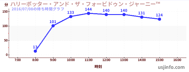 • ハリーポッター・アンド・ザ・フォービドゥン・ジャーニー™$B$N(B2016年07月08日の待ち時間