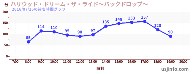 • ハリウッド・ドリーム・ザ・ライド〜バックドロップ〜$B$N(B2016年07月15日の待ち時間