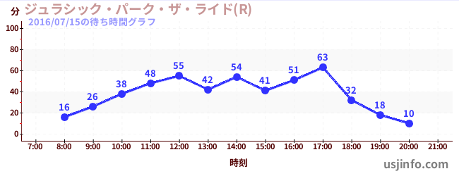 • ジュラシック・パーク・ザ・ライド(R)$B$N(B2016年07月15日の待ち時間