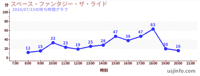 • スペース・ファンタジー・ザ・ライド$B$N(B2016年07月15日の待ち時間