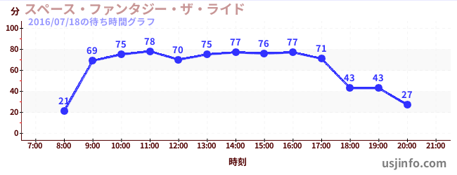 • スペース・ファンタジー・ザ・ライド$B$N(B2016年07月18日の待ち時間