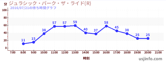 • ジュラシック・パーク・ザ・ライド(R)$B$N(B2016年07月21日の待ち時間