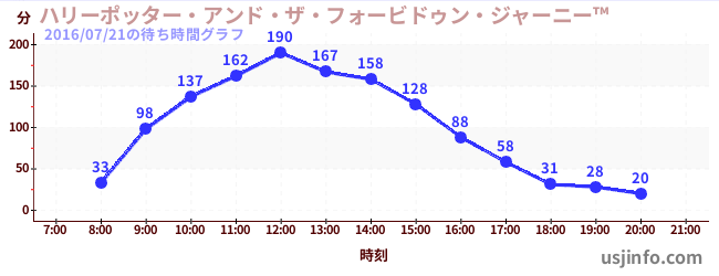 • ハリーポッター・アンド・ザ・フォービドゥン・ジャーニー™$B$N(B2016年07月21日の待ち時間