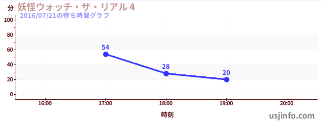 • 妖怪ウォッチ・ザ・リアル 4$B$N(B2016年07月21日の待ち時間