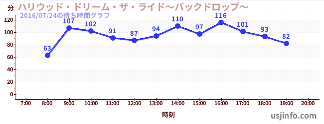 • ハリウッド・ドリーム・ザ・ライド〜バックドロップ〜$B$N(B2016年07月24日の待ち時間