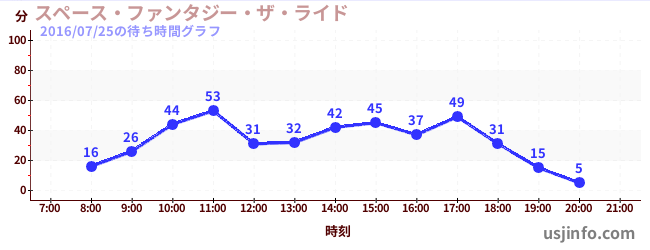 • スペース・ファンタジー・ザ・ライド$B$N(B2016年07月25日の待ち時間