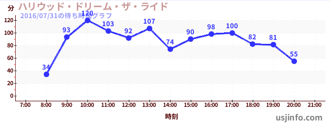 • ハリウッド・ドリーム・ザ・ライド$B$N(B2016年07月31日の待ち時間