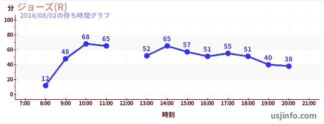 • ジョーズ(R)$B$N(B2016年08月02日の待ち時間