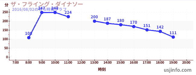 • ザ・フライング・ダイナソー$B$N(B2016年08月02日の待ち時間