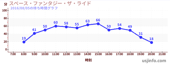 • スペース・ファンタジー・ザ・ライド$B$N(B2016年08月05日の待ち時間