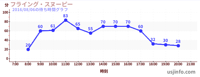 • フライング・スヌーピー$B$N(B2016年08月06日の待ち時間