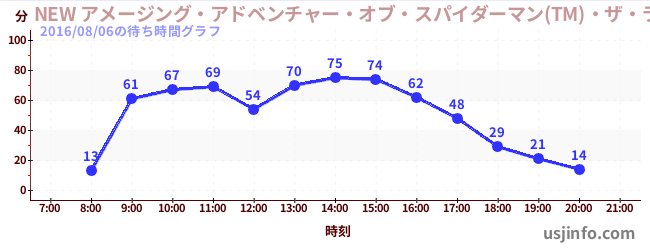 • NEW アメージング・アドベンチャー・オブ・スパイダーマン(TM)・ザ・ライド 4K3D$B$N(B2016年08月06日の待ち時間