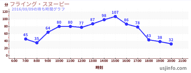 • フライング・スヌーピー$B$N(B2016年08月09日の待ち時間