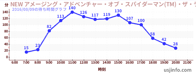 • NEW アメージング・アドベンチャー・オブ・スパイダーマン(TM)・ザ・ライド 4K3D$B$N(B2016年08月09日の待ち時間