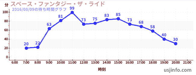 • スペース・ファンタジー・ザ・ライド$B$N(B2016年08月09日の待ち時間