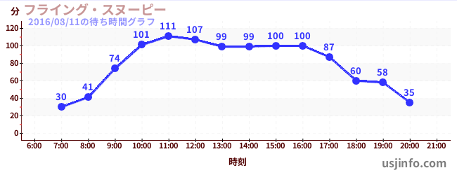 • フライング・スヌーピー$B$N(B2016年08月11日の待ち時間