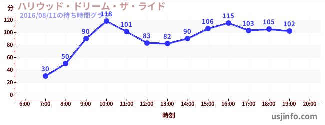 • ハリウッド・ドリーム・ザ・ライド$B$N(B2016年08月11日の待ち時間
