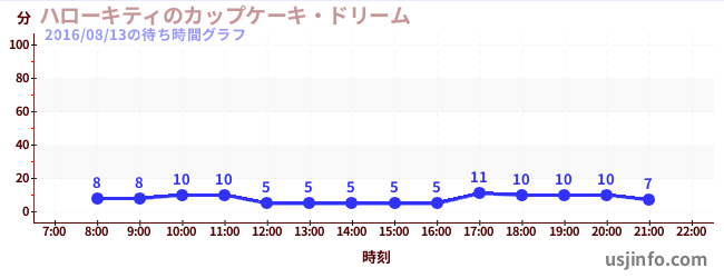• ハローキティのカップケーキ・ドリーム$B$N(B2016年08月13日の待ち時間