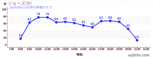 • ジョーズ(R)$B$N(B2016年08月13日の待ち時間