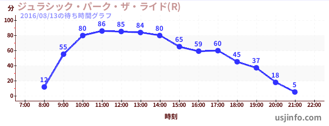 • ジュラシック・パーク・ザ・ライド(R)$B$N(B2016年08月13日の待ち時間