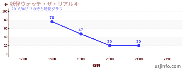 • 妖怪ウォッチ・ザ・リアル 4$B$N(B2016年08月13日の待ち時間