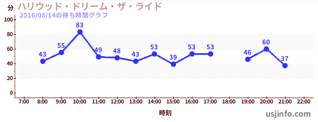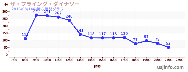 • ハリウッド・ドリーム・ザ・ライド$B$N(B2016年08月14日の待ち時間