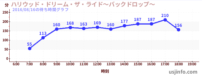 • ハリウッド・ドリーム・ザ・ライド〜バックドロップ〜$B$N(B2016年08月16日の待ち時間