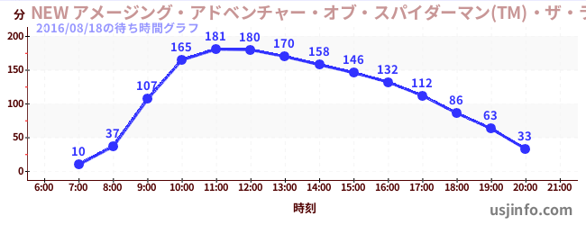 • NEW アメージング・アドベンチャー・オブ・スパイダーマン(TM)・ザ・ライド 4K3D$B$N(B2016年08月18日の待ち時間