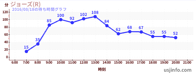 • ジョーズ(R)$B$N(B2016年08月18日の待ち時間