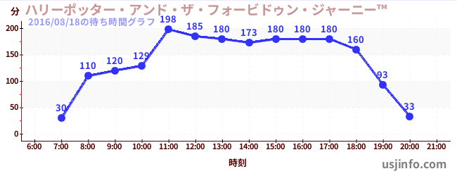 • ハリーポッター・アンド・ザ・フォービドゥン・ジャーニー™$B$N(B2016年08月18日の待ち時間