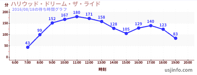• ハリウッド・ドリーム・ザ・ライド$B$N(B2016年08月18日の待ち時間
