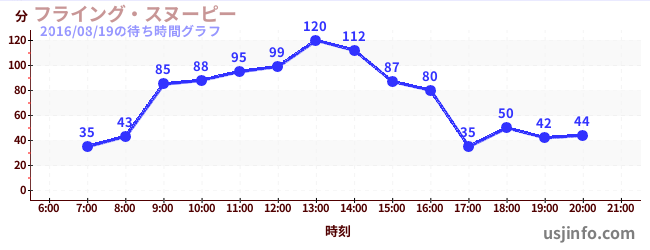 • フライング・スヌーピー$B$N(B2016年08月19日の待ち時間