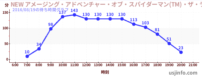 • NEW アメージング・アドベンチャー・オブ・スパイダーマン(TM)・ザ・ライド 4K3D$B$N(B2016年08月19日の待ち時間