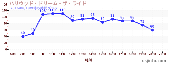 • ハリウッド・ドリーム・ザ・ライド$B$N(B2016年08月19日の待ち時間