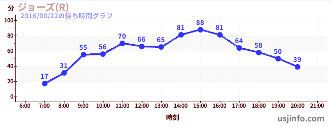 • ジョーズ(R)$B$N(B2016年08月22日の待ち時間