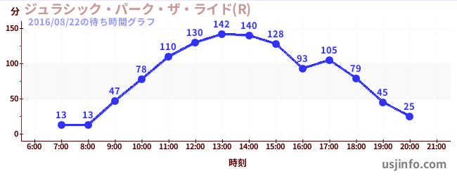 • ジュラシック・パーク・ザ・ライド(R)$B$N(B2016年08月22日の待ち時間