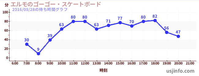 • エルモのゴーゴー・スケートボード$B$N(B2016年08月28日の待ち時間