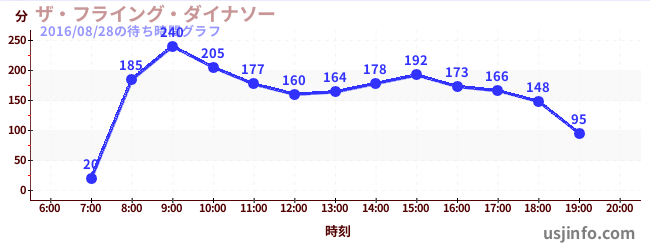 • ザ・フライング・ダイナソー$B$N(B2016年08月28日の待ち時間