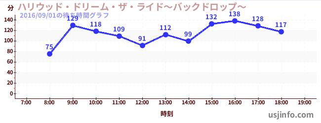 • ハリウッド・ドリーム・ザ・ライド〜バックドロップ〜$B$N(B2016年09月01日の待ち時間