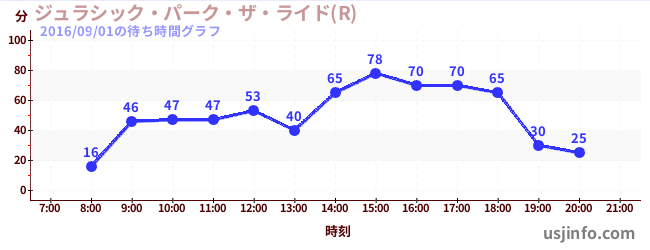 • ジュラシック・パーク・ザ・ライド(R)$B$N(B2016年09月01日の待ち時間