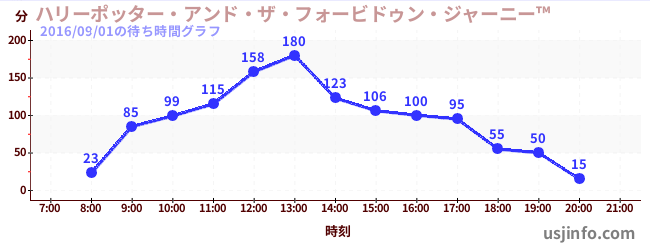 • ハリーポッター・アンド・ザ・フォービドゥン・ジャーニー™$B$N(B2016年09月01日の待ち時間